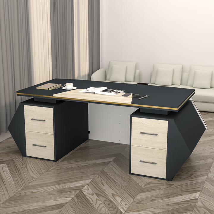 The Martin Executive Desk is the epitome of modern office elegance, designed to optimize space while providing ample storage and a sturdy work surface. Crafted with precision and high-quality materials, this desk is ideal for professionals seeking both functionality and style.
